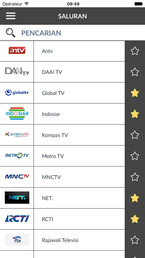 • tab didedikasikan untuk saluran favorit Anda, yang memungkinkan untuk konsultasi lebih cepat!