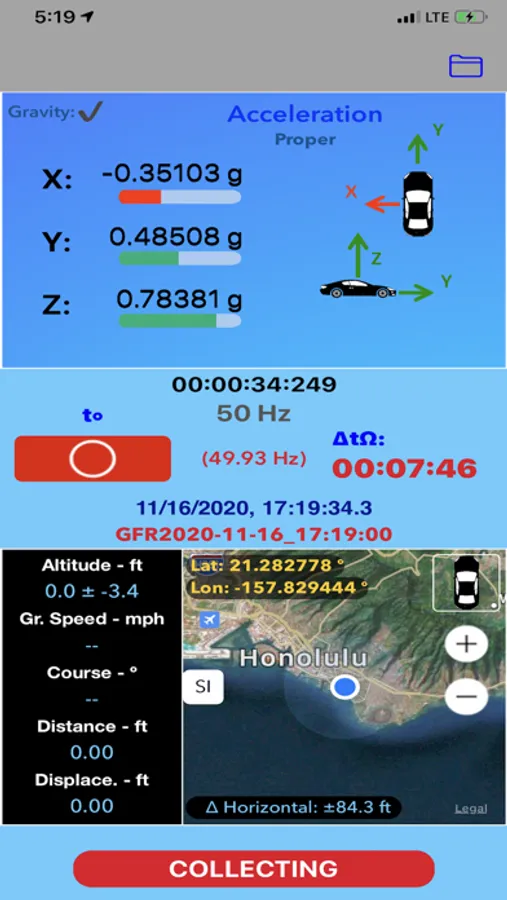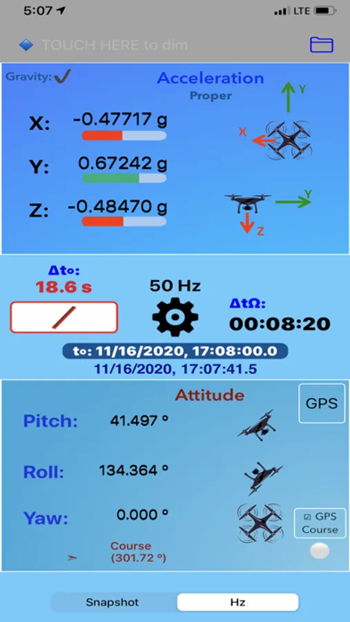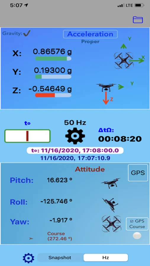 Developed for NASA payloads, G-Field Recorder is resistant to data loss from impacts, continuously saving your data to permanent storage in case of a severe upset event that damages your device (e.g. you crash your drone).