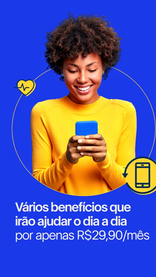 Você garante tudo isso por apenas R$29,90 por mês que você já ganha de cashback em bônus celular e R$ 10 em Uber. Sem falar na comodidade de ter todos os serviços bancários, benefícios e auxílios em um lugar só.