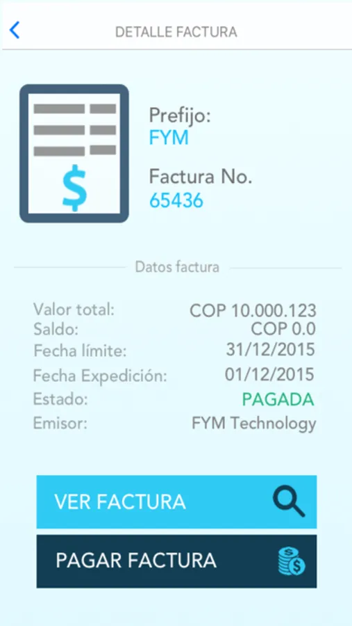Esta aplicación no tiene ningún costo y es exclusiva para usuarios eBill que tienen cuenta VIP en eBill(Site). Para mayor información no dude en visitar nuestro sitio web (http://facturaenlinea.co).