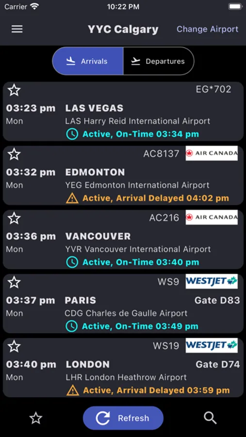 Flight arrivals and departures information for Calgary Airport (YYC)