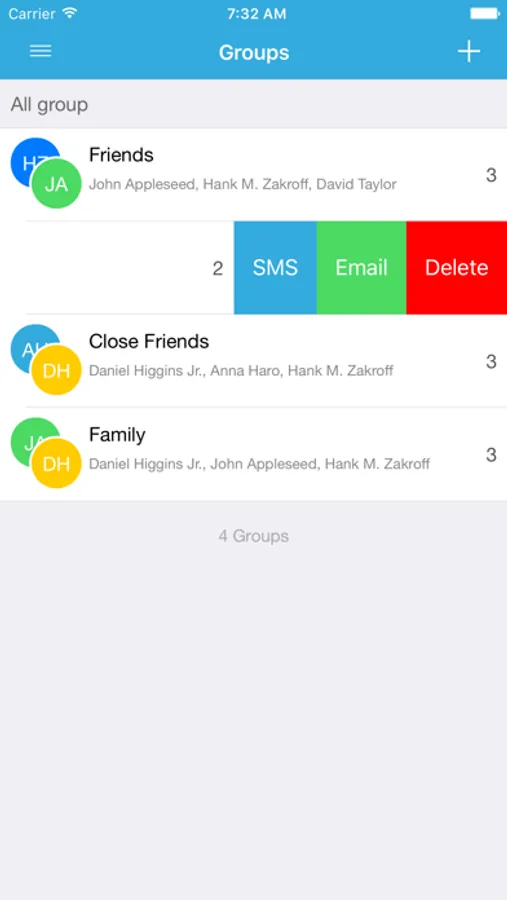 Group Text help you create and manage your group contacts easily. Once group is created, you no longer have to select contact one-by-one for a group message or group email.
