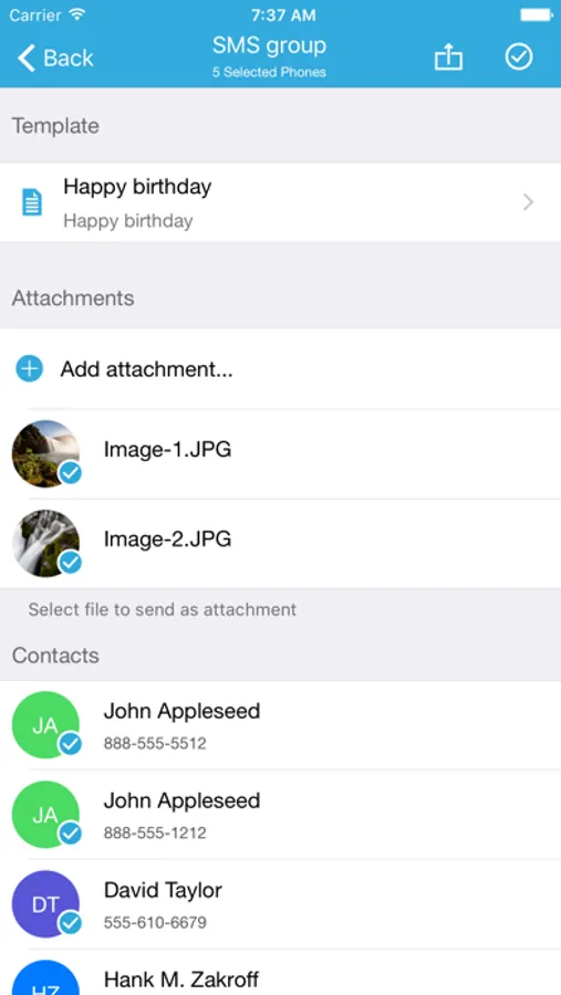 - Send mass SMS, iMessage, MMS, email to group quickly