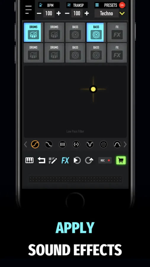 • Different PRO DJ sound effects of studio-quality: LP Filter, HP Filter, Delay, Reverb and more