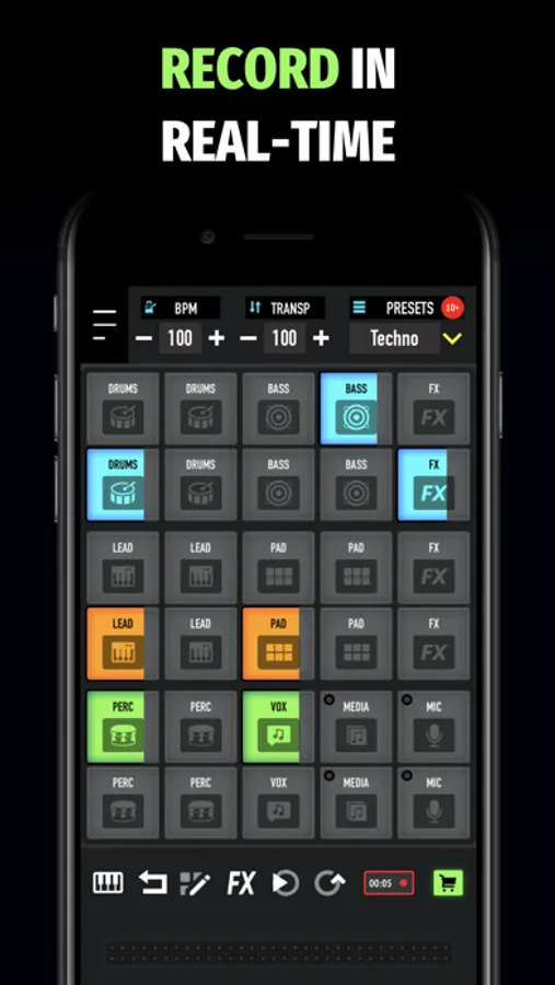 • Record your voice or any foley sound from the mic, and then use it in your music. Show just a little creativity
