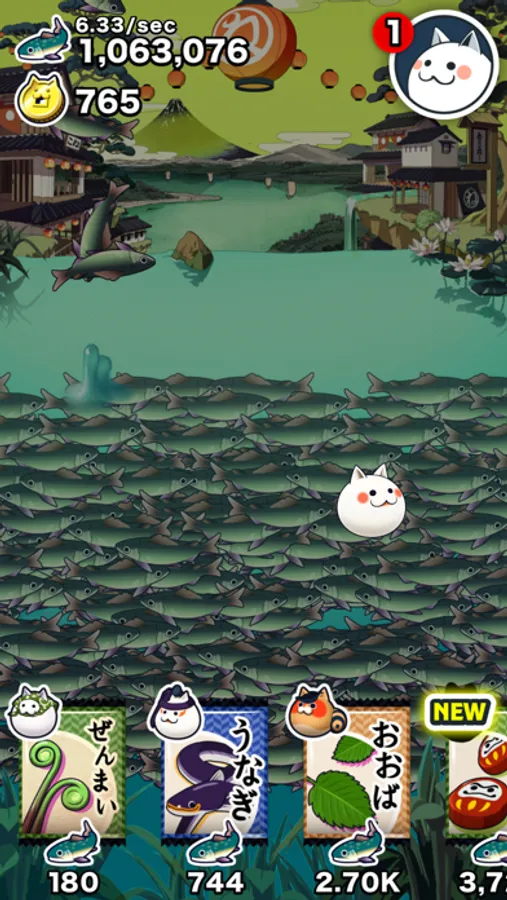 The cats are ready to bring new fish quickly! The pond gradually becomes full of fish.