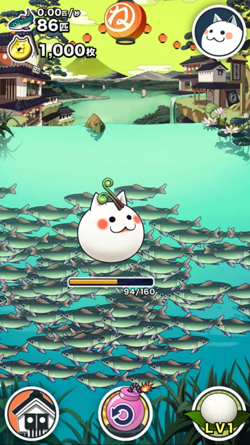 First, put the ingredients on the cat. Next, swipe to get the fish of the pond at once! When the cat is full, a new species will be born.
