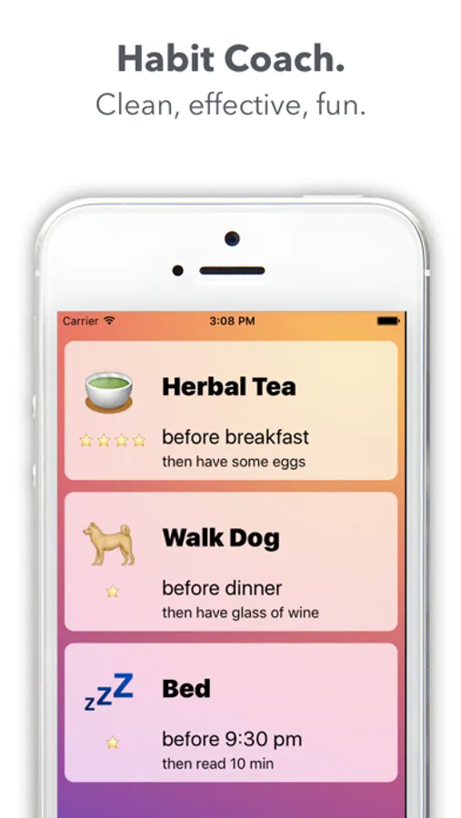 Simple gestures will make it easy to use and the simple user interface won't get into your way of what matters - forming new habits.
