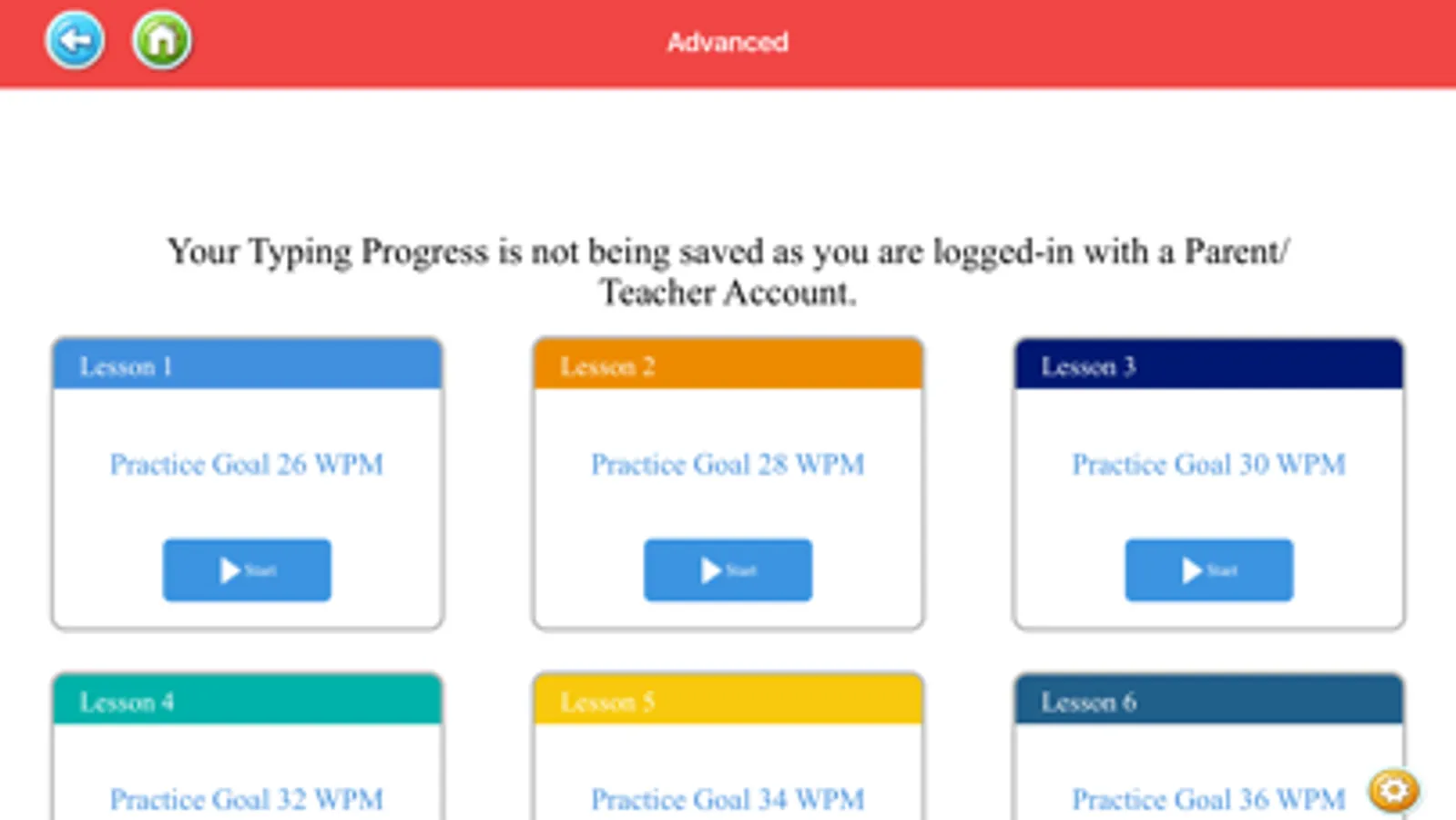 Typing Lessons: The app offers 3 skill levels - basic, intermediate, & advanced that include multiple lessons in each. The basic level covers touch typing skills with introduction to the QWERTY keyboard. In the intermediate level, the student learns to type basic words & simple sentences.
