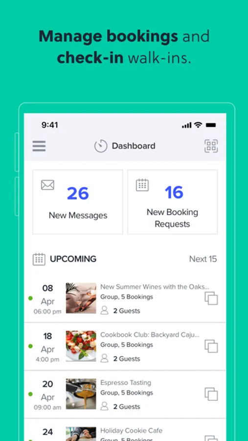 Keep your experiences organized with a convenient calendar of all your bookings. Easily access booking details, manage upcoming experience details, check-in guests, and download your daily manifest.