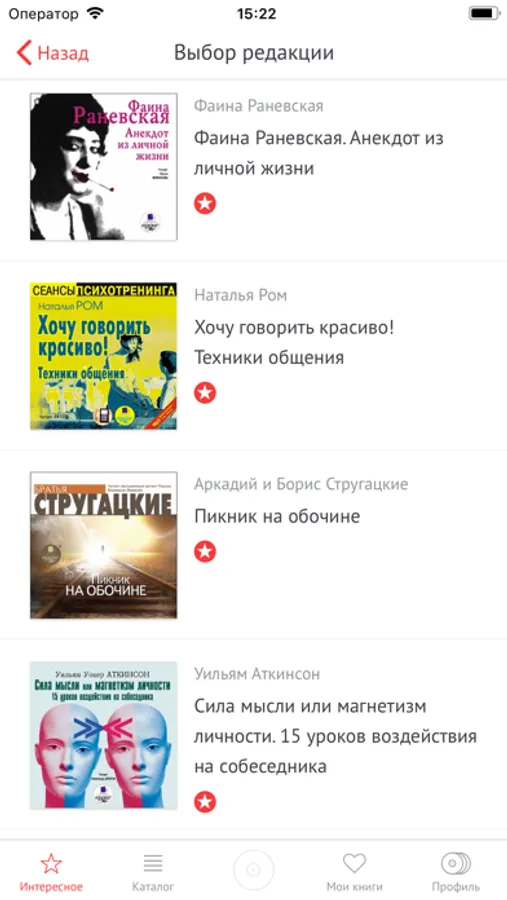 Вы без труда найдёте желаемое в обширном и удобно структурированном каталоге, откроете для себя новые горизонты, изучая любовно собранные нами тематические коллекции, узнаете, что слушают другие, и что рекомендуем послушать мы. Выбирайте осознанно: в каждой аудиокниге предусмотрен фрагмент для предварительного прослушивания. Вы оцените быструю загрузку, разбивку на главы и прочие незаметные, но очень приятные мелочи.