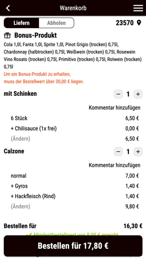 Original italienische Gerichte und Spezialitäten werden mit den besten Zutaten frisch zubereitet. Wir bieten eine große Auswahl an wohlschmeckenden Speisen. Ob mit Fleisch oder vegetarisch – es ist für jeden Geschmack das Richtige dabei. Große Portionen sorgen dafür, dass Sie von dem leckeren Essen auch richtig satt werden.