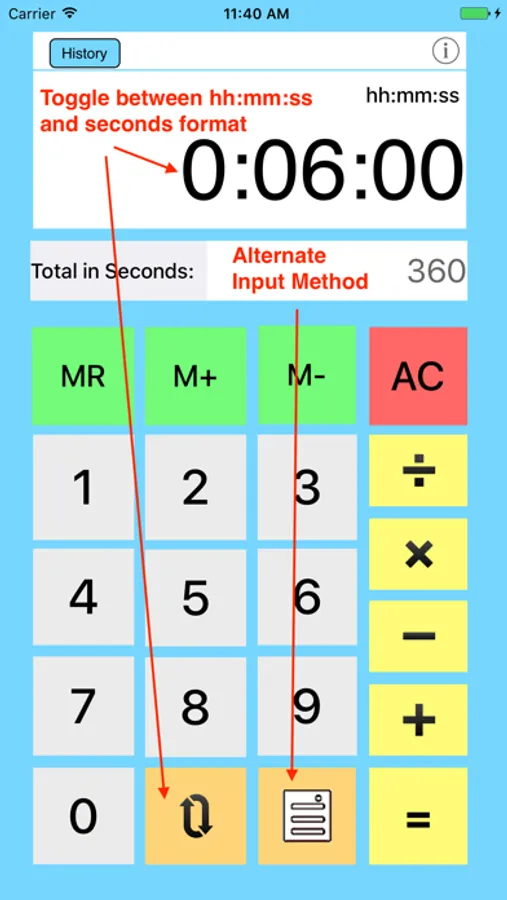*app does not calculate fractions of time less than a second.