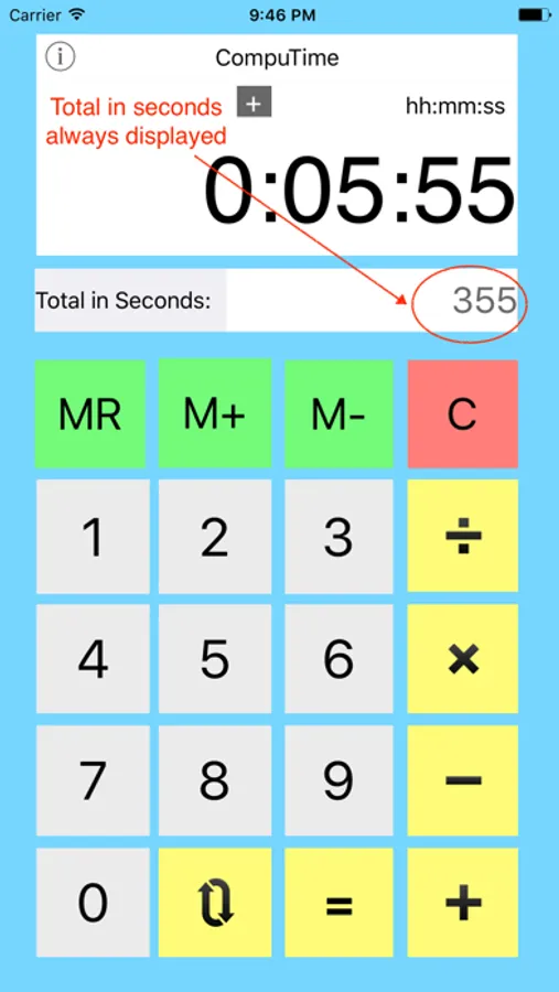 CompuTime instantly calculates time entered in any combination of hours, minutes, and seconds.*