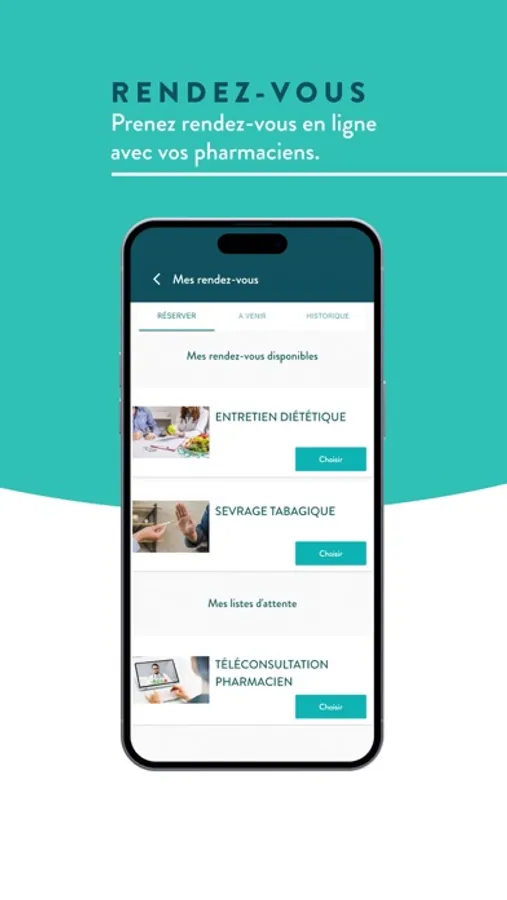 Accédez également à la prise de rendez-vous en ligne pour fixer un entretien avec votre pharmacien pour faire le point sur vos affections et vos pathologies, en pharmacie.