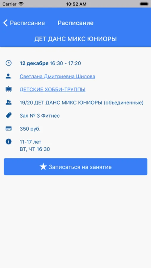 Так же есть информация о текущем балансе, новостях, контактах, и многое другое. В целом, приложение призвано облегчить процесс организации тренировок в центре «РитмИкс».