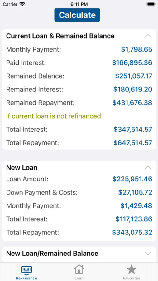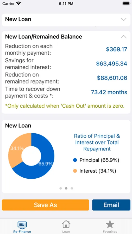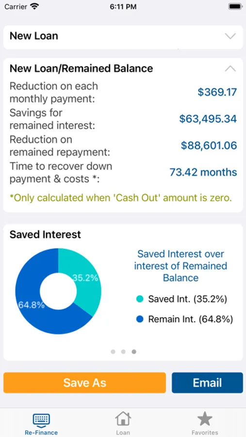 - Also you can save your loans/refinanace into "Favorites" tab.