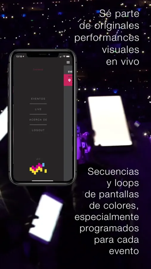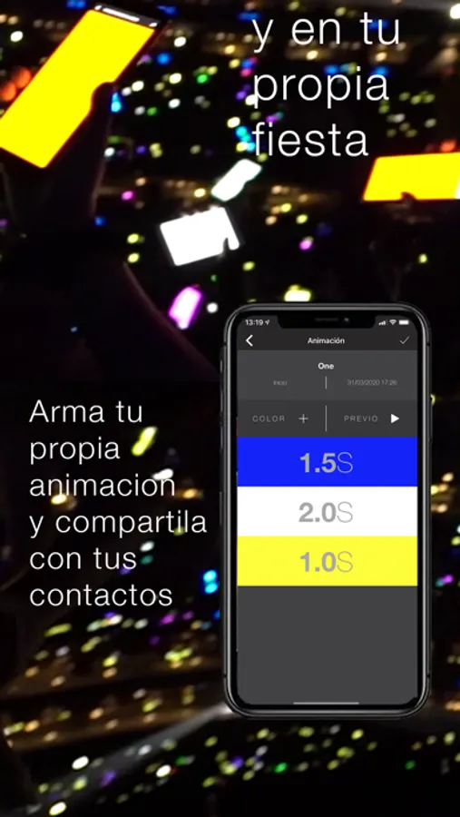 Iupix permite generar su propia secuencia de luces para sincronizar con otros dispositivos móviles y compartirlo con amigos, o bien con otros asistentes a cualquier tipo de show.