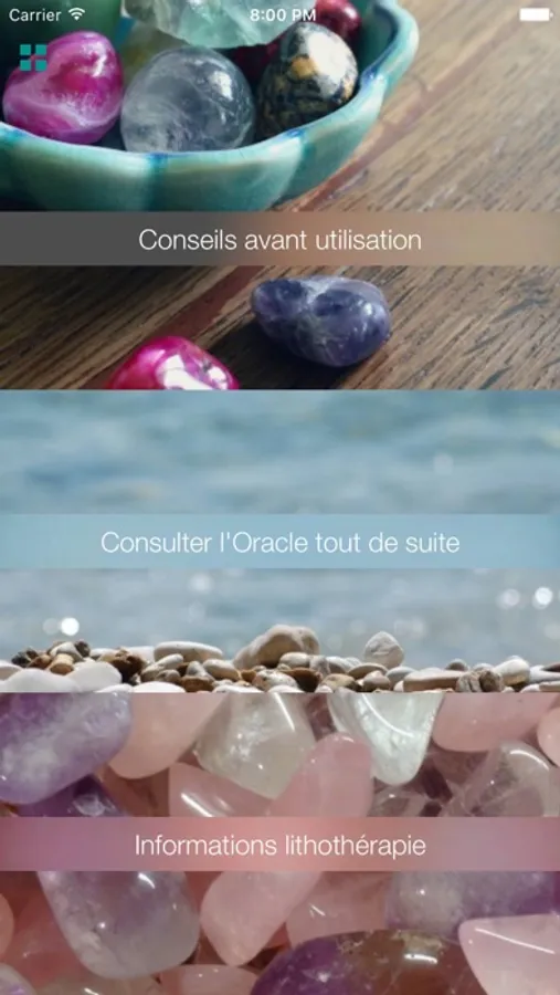 Cette application vous permet de manière fluide et douce de vous relier profondément à vous-même et d'éclairer votre lanterne par le pouvoir des pierres.