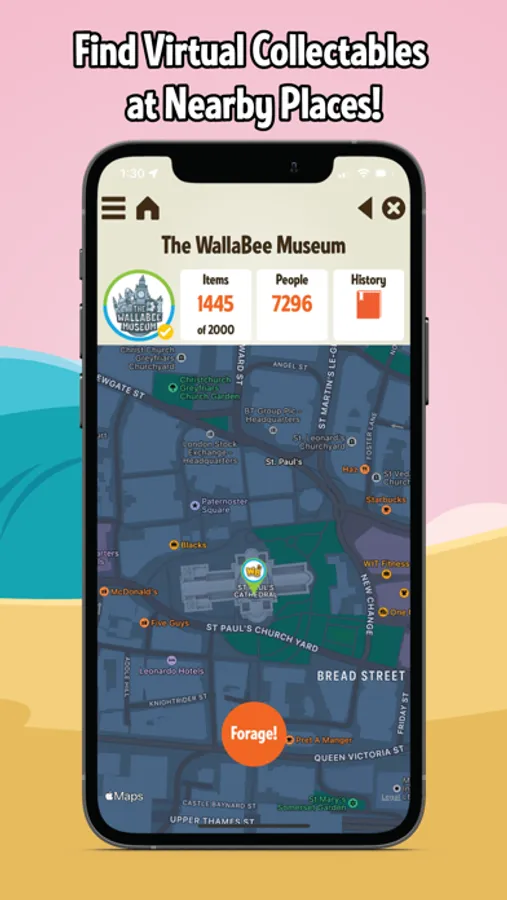 Join Benson the wallabee on his journey to find and collect over 2,600 virtual items hidden in locations all around you! WallaBee is a scavenger hunt style game that scratches the insatiable collecting itch, allowing players to obtain virtual items and create their own collection. The goal of WallaBee is to complete every set of virtual items available. Each set has a unique theme that’s packed with beautiful artwork, waiting to be saved to your personal collection!