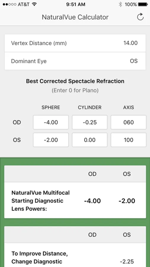 The NaturalVue® Multifocal QuickStart Calculator is an application designed to help practitioners fit NaturalVue Multifocal 1 Day Contact Lenses. The NaturalVue Multifocal QuickStart Calculator provides the optimal starting lens powers and only requires the patient’s best corrected spectacle refraction and vertex distance. The calculator also provides powers for vision enhancements, if needed.