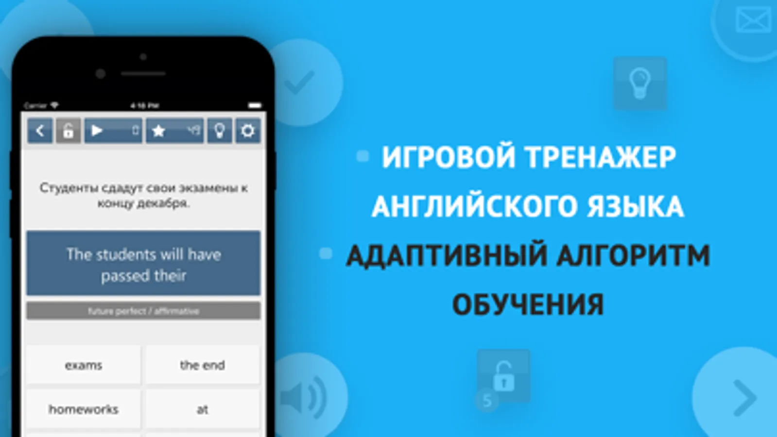 Благодаря оригинальной методике преподавания приложение позволит вам легко и непринуждённо усвоить теоретический материал, существенно расширить словарный запас, освоить письменную и устную английскую речь.