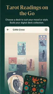 In this tarot reading app, you can explore different card types, learn interpretations, and access personalized readings. Includes AI-generated insights, various spreads, and the ability to track physical readings.