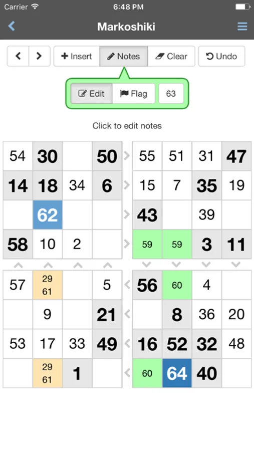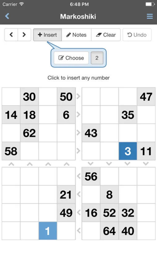 Markoshiki is a logic puzzle game, similar to Sudoku or Futoshiki.