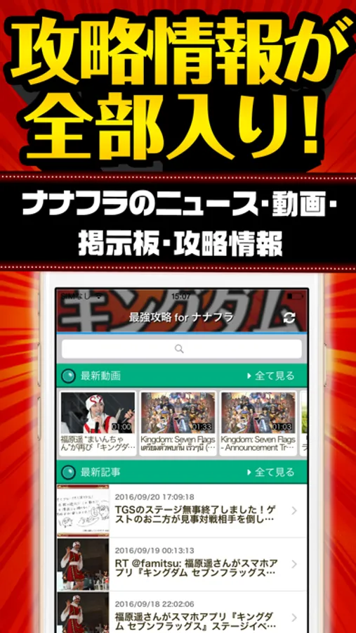 最新ニュース、攻略まとめ、実況動画、掲示板をこのアプリ1つで全て網羅!