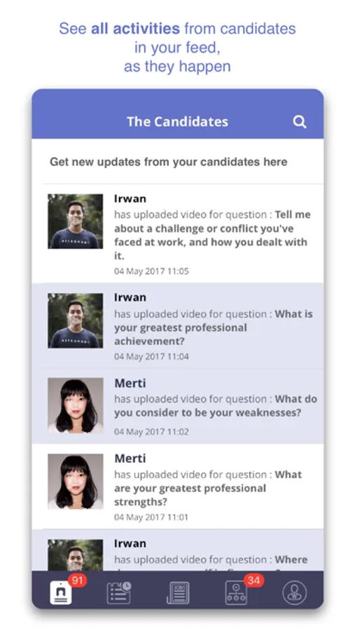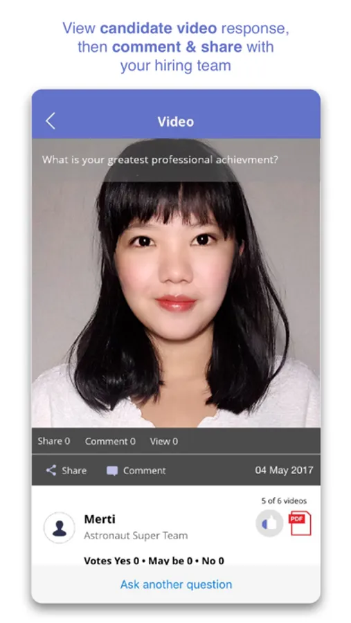Astronaut allows recruiters, hiring managers and business leaders to take all the benefits of the Astronaut Recruiter platform with them anytime, anywhere. View candidate interview videos, comment, vote candidate and send more questions to candidates via the Astronaut Recruiter iOS app.