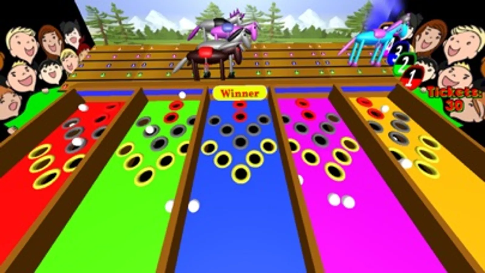 Easy to play, just throw your ping pong balls into the holes to race your horse towards the finish line.