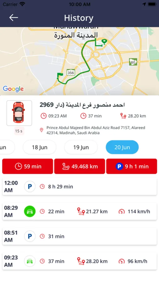- تخزين مسار رحلات السيارة لمدة شهر كامل وقابلة للزيادة .