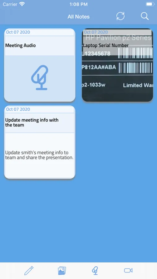 Easily insert/update your notes, choose from Text, Video Image and Audio notes.