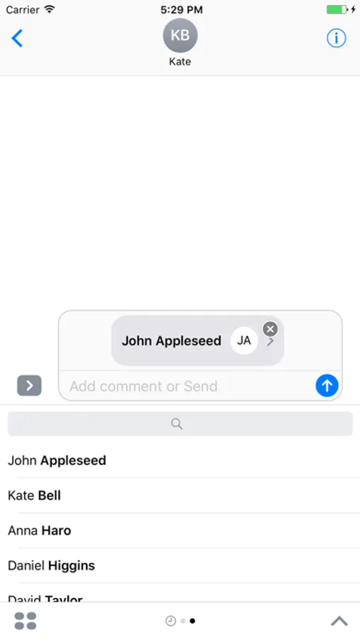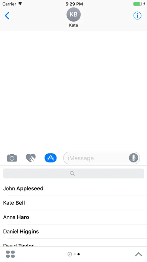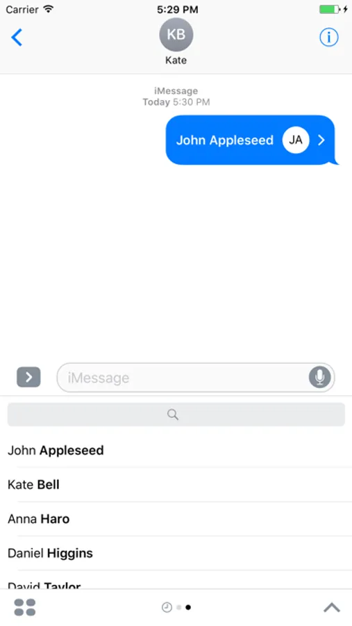 Easily share contacts in the Messages app. You can browse or search your contacts and tap to share them.