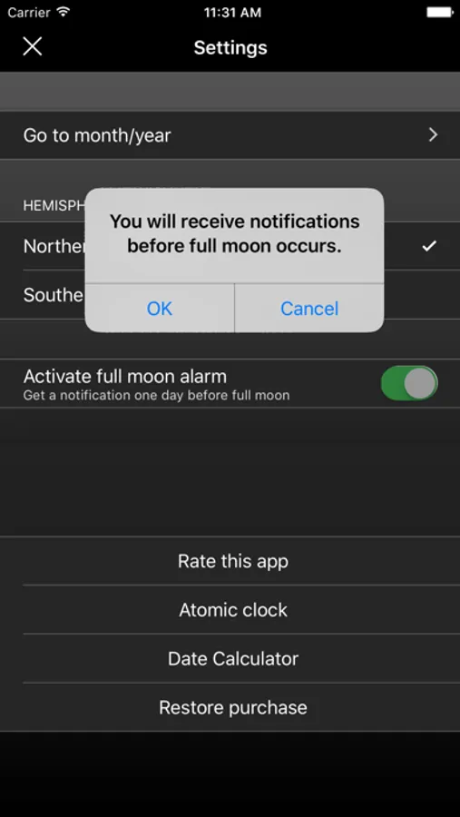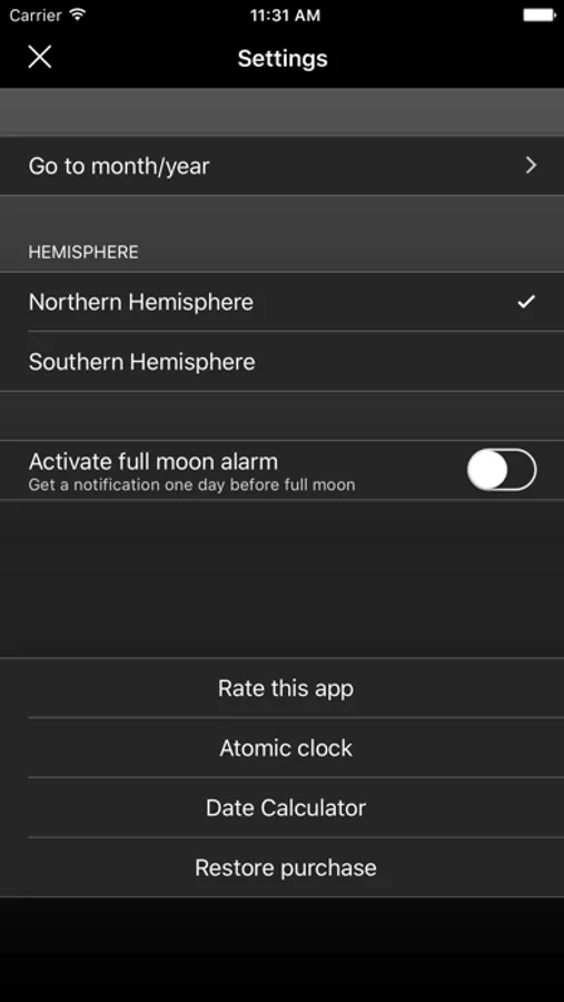 - Full moon alarm: Automatically receive a notification when full moon is coming (optional)