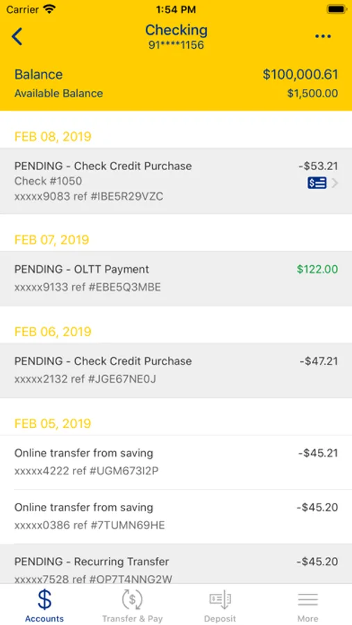 • View recent transactions, including check images