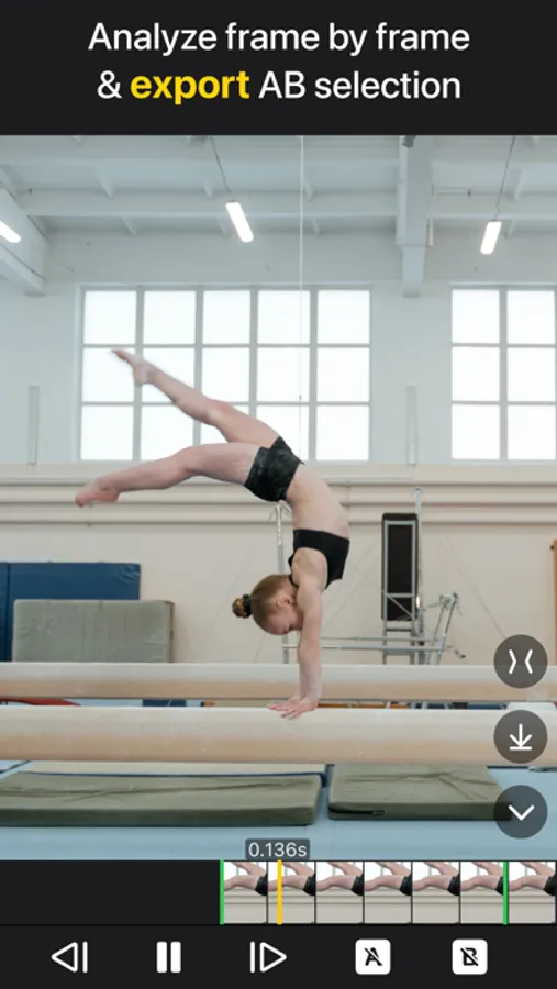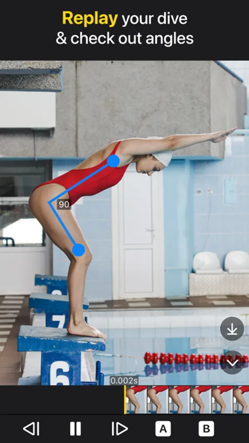 The REPLAY View* allows frame-by-frame analysis of athlete moves, including measuring the angles. You can also export a short part of the replay video using AB selection.