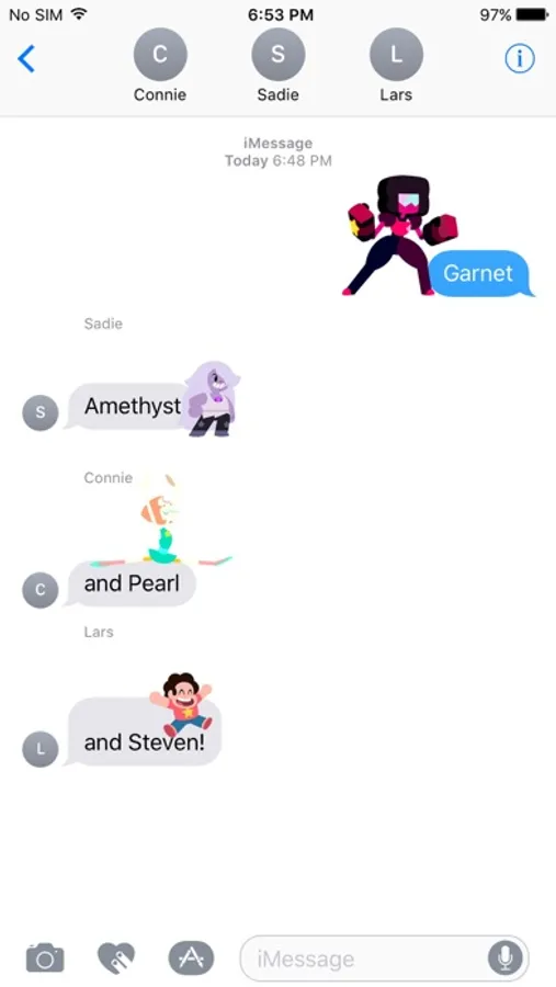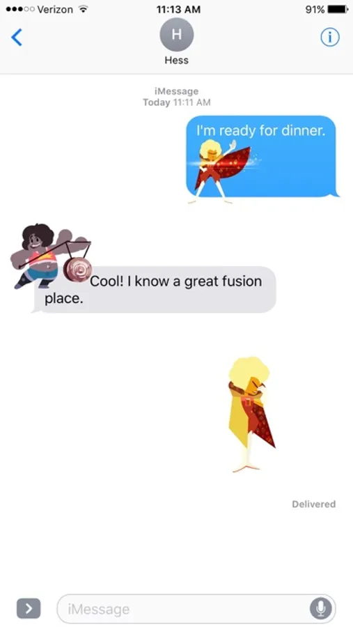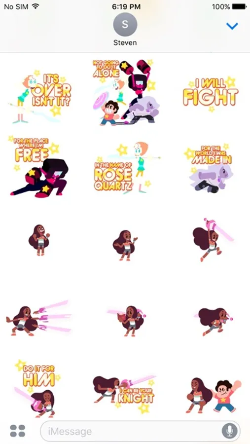 Show your friends that you’re strong in the real way! Now you can add Steven Universe stickers and quotes to your iMessages. This pack includes adorably awesome stickers of Steven, Connie, Greg, Garnet, Amethyst, Pearl, Peridot, Hessonite, Opal, Sardonyx, Smokey Quartz and Stevonnie!