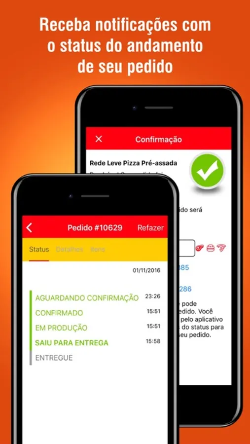 • De acordo com o andamento do pedido, você será notificado sobre o status do seu pedido através de etapas: confirmado, em produção, saiu para entrega e entregue.