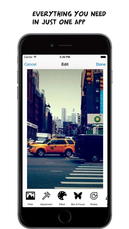 On top of filters, PhotosRUs features a ton of stickers and the developers try hard to keep up with the latest trends so your stickers are up to date. The filters available here can also be customized to give you the look you want. There are also some basic photo editing tools such as crop, frames, hue, saturation, black and white, collages, brightness, and contrast settings.