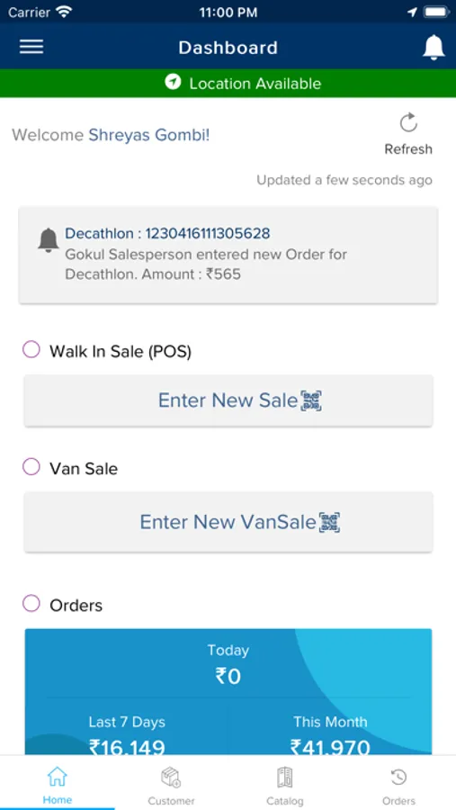 - Place orders directly with the distributor for faster deliveries, along with Geolocation and SMS/Push confirmation