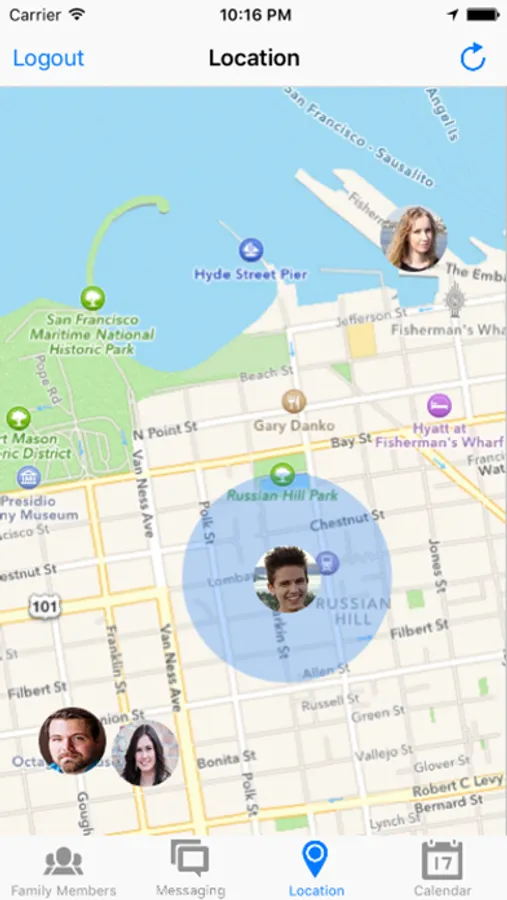 - Your own location is indicated on the Map. Once all the members have signed in, you can find their location by clicking the ‘Refresh’ button on the top right corner of the Map View.
