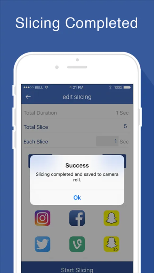 vSlice is an awesome app for slicing videos to be able to share on Facebook, Instagram, Vine, Twitter, SnapChat, and can do custom number of slices.