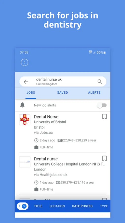 • Job search: Search the latest jobs in various dental fields with customised parameters to find your perfect job. Click your chosen dental field e.g dentist or dental nurse and see 1000’s of job listings instantly.