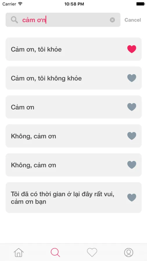 TÌM KIẾM VÀ BOOKMARK: Chúng tôi cũng xây dựng chức năng Tìm kiếm giúp bạn có thể dễ dàng tìm được những từ, câu mình cần sử dụng một cách đơn giản và nhanh chóng. Ngoài ra, chức năng Bookmark sẽ giúp bạn lưu lại những câu mà bạn yêu thích và đưa vào một mục riêng đễ dễ dàng tìm lại khi cần chỉ bằng một thao tác nhấp đơn giản.