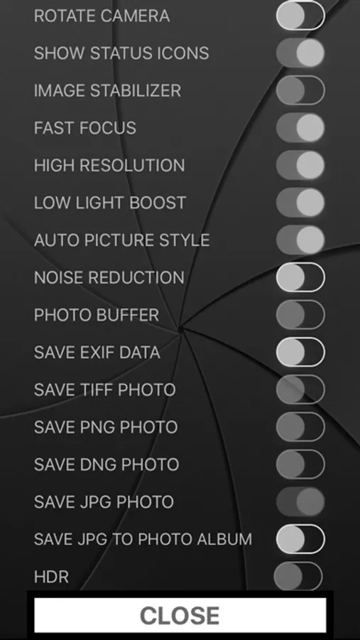 • Save JPG Location: Choose to save JPGs in the app, to your device's photo album, or both.