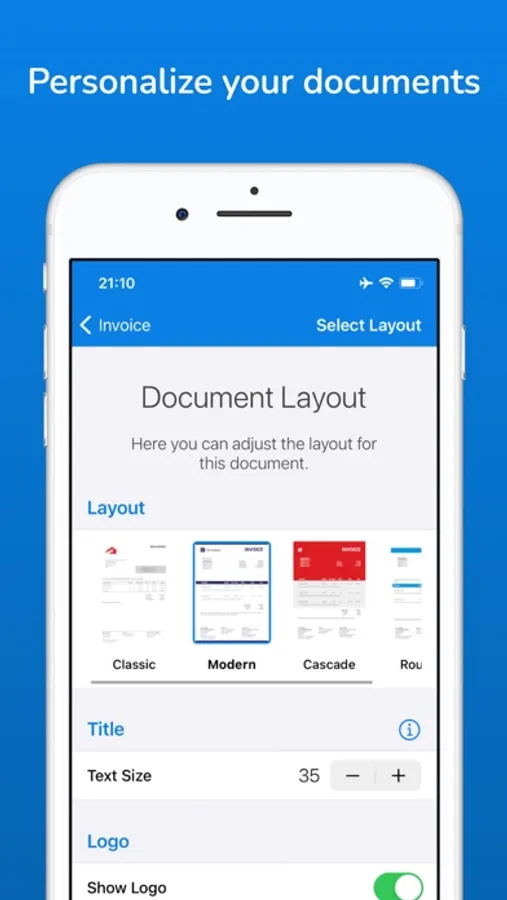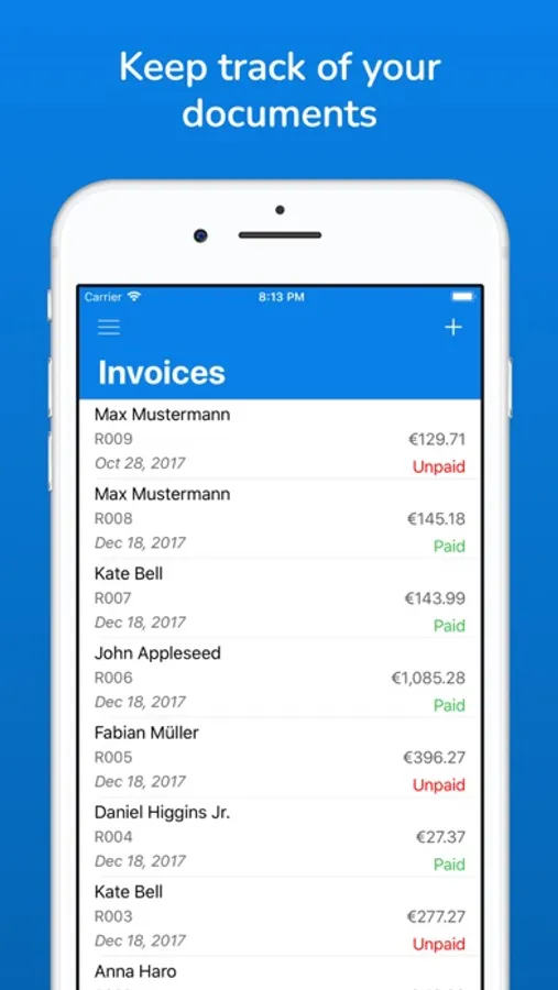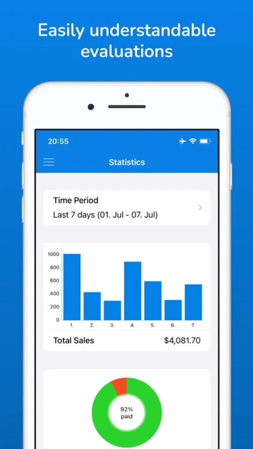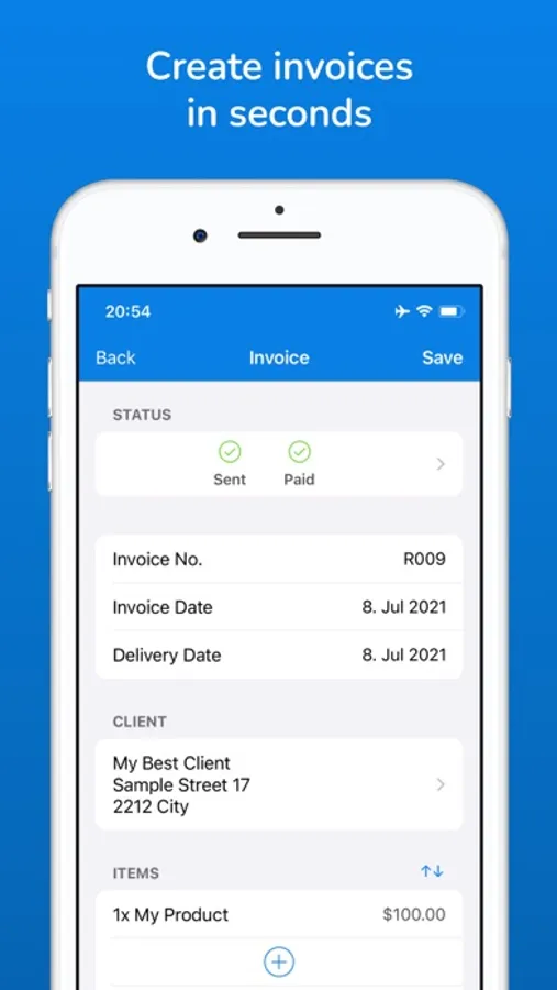 The clear user interface and the perfectly coordinated processes enable intuitive and fast work. Create attractive invoices and estimates with ease, add items, prices and tax rates and customize the layout to your liking. With just a few clicks you can print or send your documents electronically without leaving the app.
