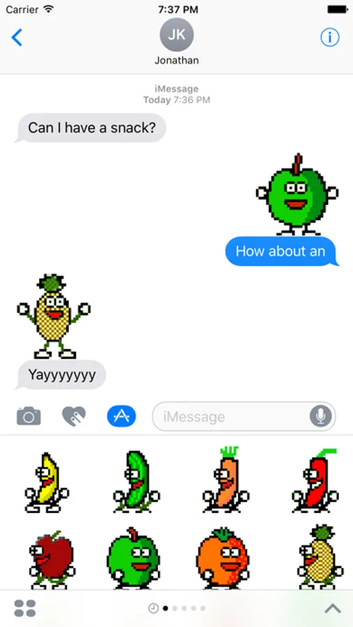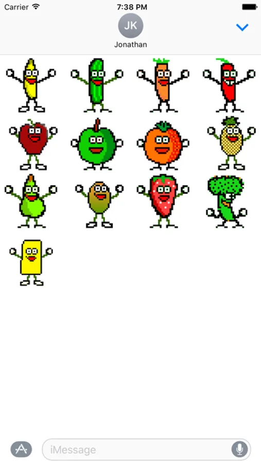 This pack has 13 animated dancing fruits and veggies like banana, carrot, orange, and carrot. We even included in a fun extra sticker that's not a fruit or vegetable :)