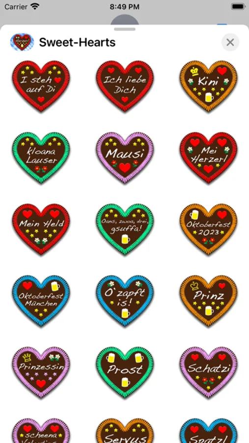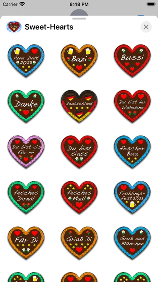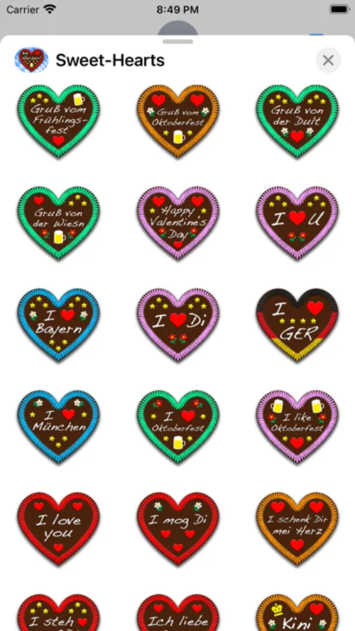 Send sugar sweet heart stickers to your friends and family directly from within iMessage!