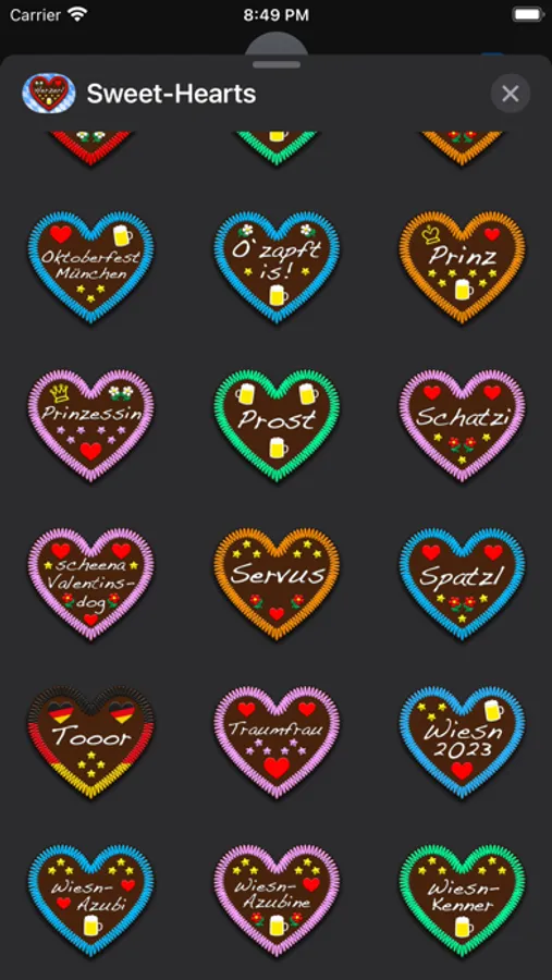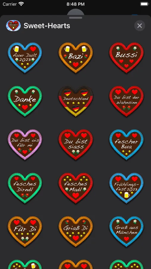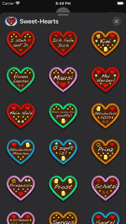 The slogans on these 54 heart stickers are mainly in bavarian dialect, as you can see them at funfairs and beerfests in bavaria and at one of the biggest beerfests in the world - the Wiesn in Munich, also known as the Oktoberfest. If you don't understand the meaning of the stickers slogans, you'll find a translation on our website.